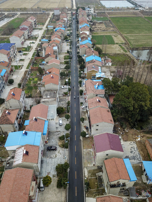 ↑袁湖村的鄉(xiāng)間道路上,少有村民出行。新華社記者 胡虎虎攝