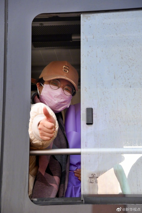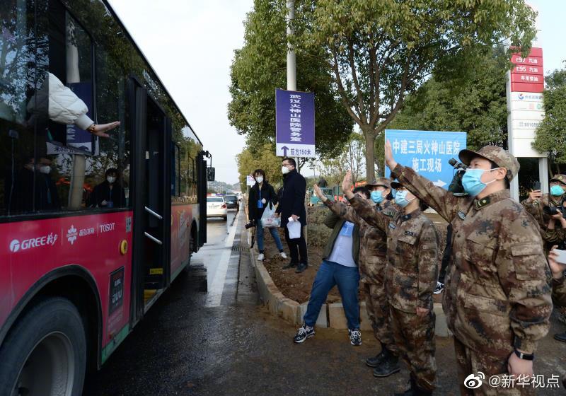經(jīng)過火神山醫(yī)院醫(yī)護(hù)人員的精心診治,首批7名符合出院標(biāo)準(zhǔn)的新冠肺炎確診患者13日下午出院?;鹕裆结t(yī)院籌備工作指揮部統(tǒng)一安排車輛將患者分別送回所居住小區(qū)門口。