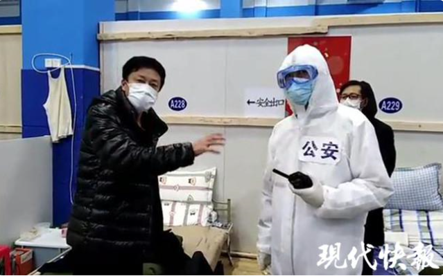 一個(gè)是執(zhí)勤民警,一個(gè)是新冠肺炎感染者,父子倆,在方艙醫(yī)院里不期而遇。2月14日,武漢江岸方艙醫(yī)院剛啟用不久,陸續(xù)收治病人,方艙醫(yī)院民警突擊隊(duì)的王桓峰正在執(zhí)勤,偶然間,一個(gè)熟悉的面孔出現(xiàn)在他的面前,“這不是父親嗎?”原來(lái),剛剛確診不久的父親,恰巧被收治在兒子執(zhí)勤的方艙醫(yī)院。