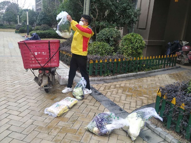 “年后,我有一位住在洪山區(qū)九里小區(qū)的朋友和說,九里小區(qū)90%以上的業(yè)主都因?yàn)榫蛹腋綦x,導(dǎo)致嚴(yán)重缺乏生活用品,有時(shí)做飯都需要去鄰居家借米和面。”這番話觸動(dòng)了小楊,“聽到之后覺得很心酸,當(dāng)時(shí)就想,我一個(gè)剛畢業(yè)的大學(xué)生,年輕有勁,就過去做一些自己能做的事情?!?/p>