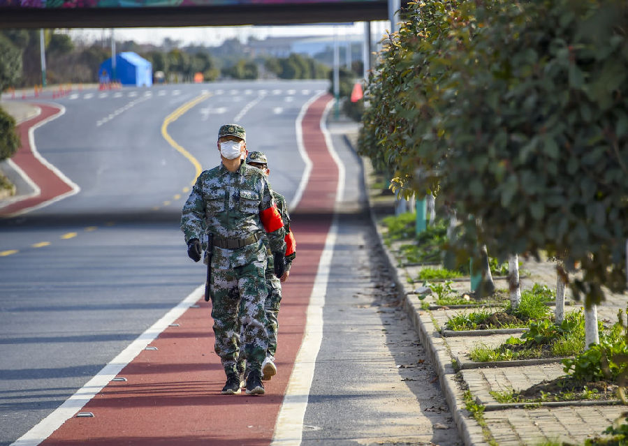 浐川村參與疫情防控的民兵在巡邏。新華社記者 胡虎虎 攝
