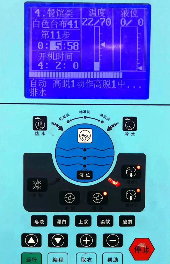 一套臥具要經(jīng)過(guò)11道洗滌消毒工序,過(guò)程中設(shè)備會(huì)自動(dòng)加熱,溫度逐步加熱至80攝氏度,在這樣的恒定高溫下要足足轉(zhuǎn)洗約50分鐘。