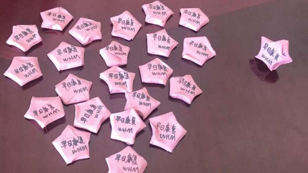 住進武漢江夏區(qū)方艙醫(yī)院的輕癥患者不得不與家人隔離,不能出門活動,在初春的戶外仰望星空,暫時只能是一個愿望。2月20日的夜晚,夜班護士卻把“星星”帶進了“方艙”!南京市中西醫(yī)結(jié)合醫(yī)院的護士王慧敏上班時,向每一位患者贈送了一個自己親手疊的許愿星,每一個“星星”都寫上了祝福的話語:“叔叔阿姨晚上好,這是我自己做的許愿星,祝愿你們早日康復(fù)!”