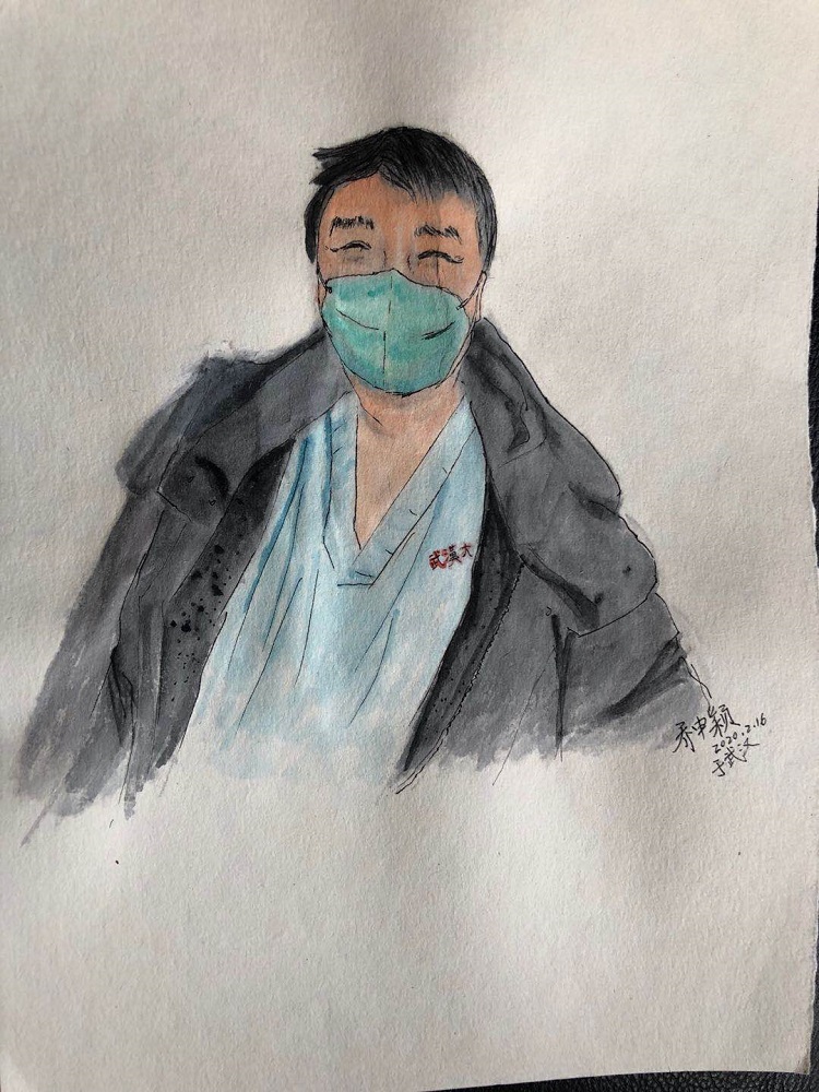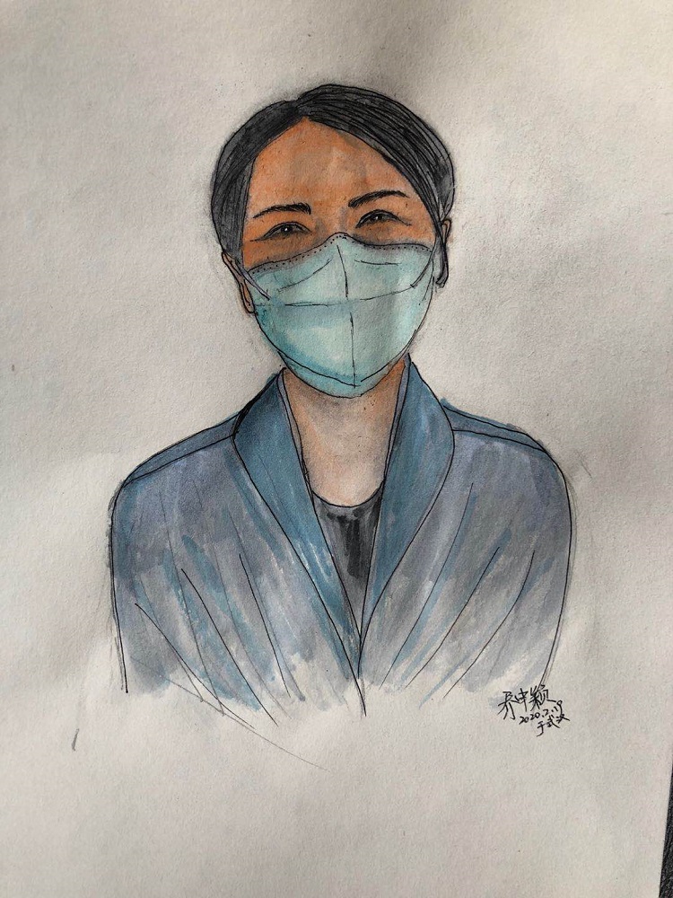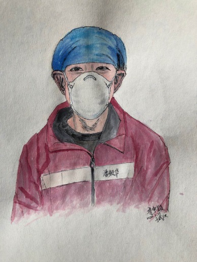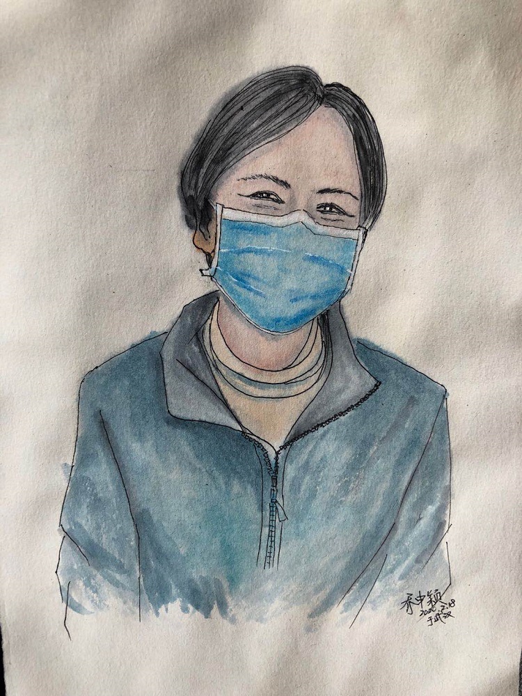 剛開始就是正常的寫稿拍視頻,隨著時間的推移,就特別想畫畫。這個城市里充滿了觸動心靈的瞬間,可能是一個笑臉,可能是一個手勢。我總覺得光是寫下來、拍下來,還遠(yuǎn)遠(yuǎn)不夠,只有把它畫下來,才真正能把我那一刻的感動也一起收藏起來。當(dāng)時武漢根本買不到顏料,我請同事幫忙從北京帶過來,2月16號的時候開始畫。第一個想到的就是采訪過的醫(yī)護(hù)人員的笑臉。因為大家都崩得很緊,好多醫(yī)護(hù)人員采訪中說著說著就哭了。雖然對采訪來說可能是件好事,但我總感覺很愧疚,覺得為個采訪讓人又難過一次。后來就形成一個習(xí)慣,每次我都要問一個問題:今天有沒有開心的事呀?或者說:咱換個話題,說點高興的!他們給了我各種各樣的答案,但是不管是為什么高興,那一刻他們的笑容都特別燦爛特別美好。所以我把他們的笑畫了下來,希望更多的人能看到,能從中汲取力量。