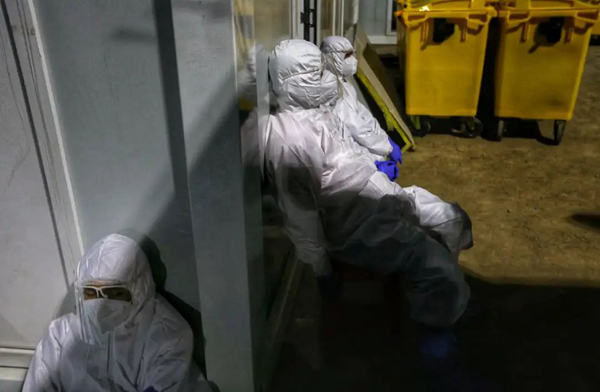 在被問到承擔(dān)這樣一項(xiàng)危險(xiǎn)的工作時(shí)是否感到害怕,一位負(fù)責(zé)處理醫(yī)療廢棄物的師傅稱,“其實(shí)我們也害怕,但是不頂上去不行,我就告訴自己我們這是在為國家做貢獻(xiàn)。”