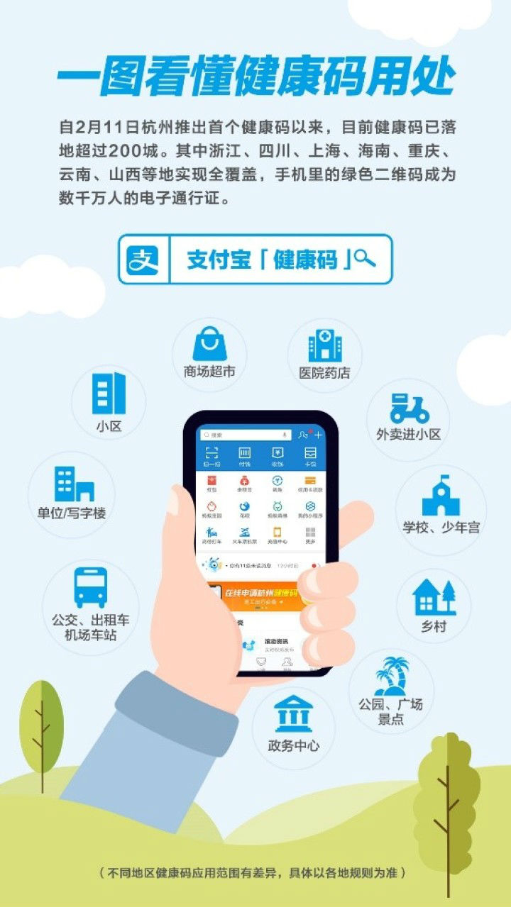 過去兩周,從杭州發(fā)源的健康碼迅速推廣至全國各地,已落地超過200城,覆蓋公交地鐵、社區(qū)、寫字樓、醫(yī)保支付、商場超市、機場車站等十大場景。