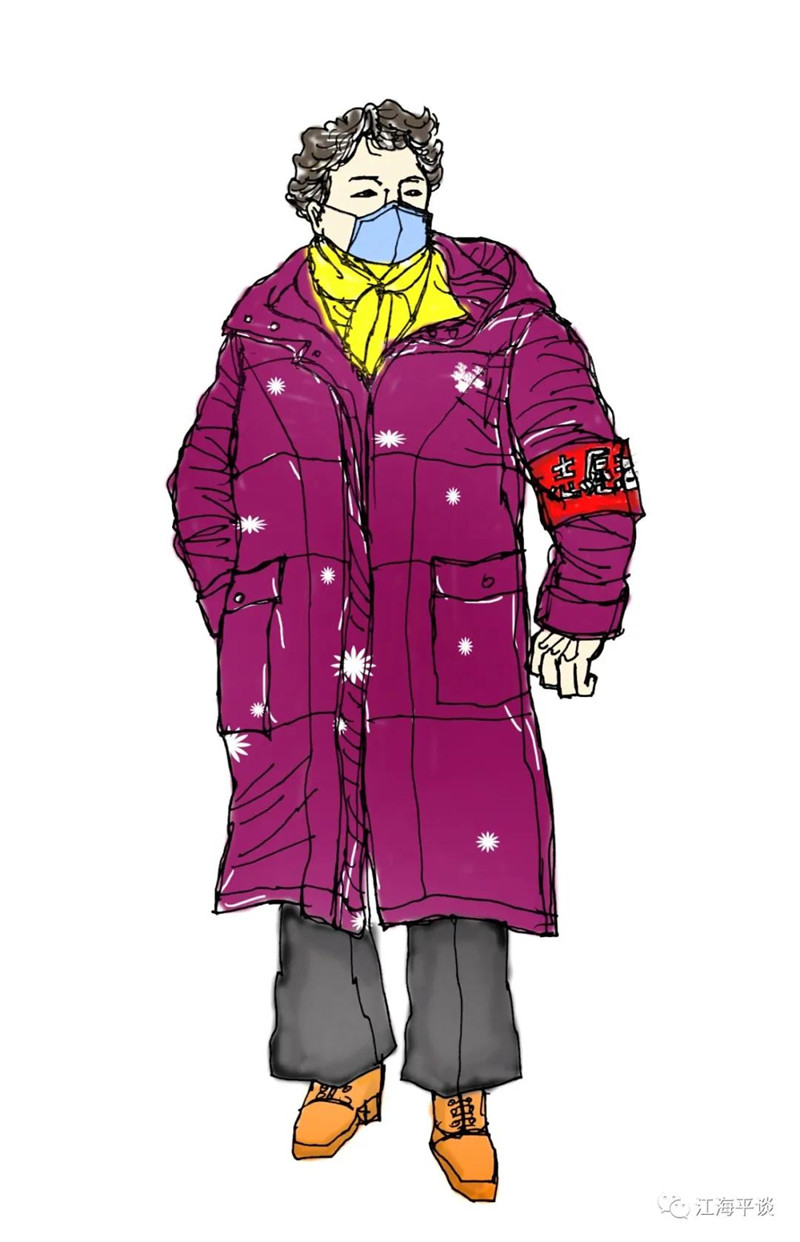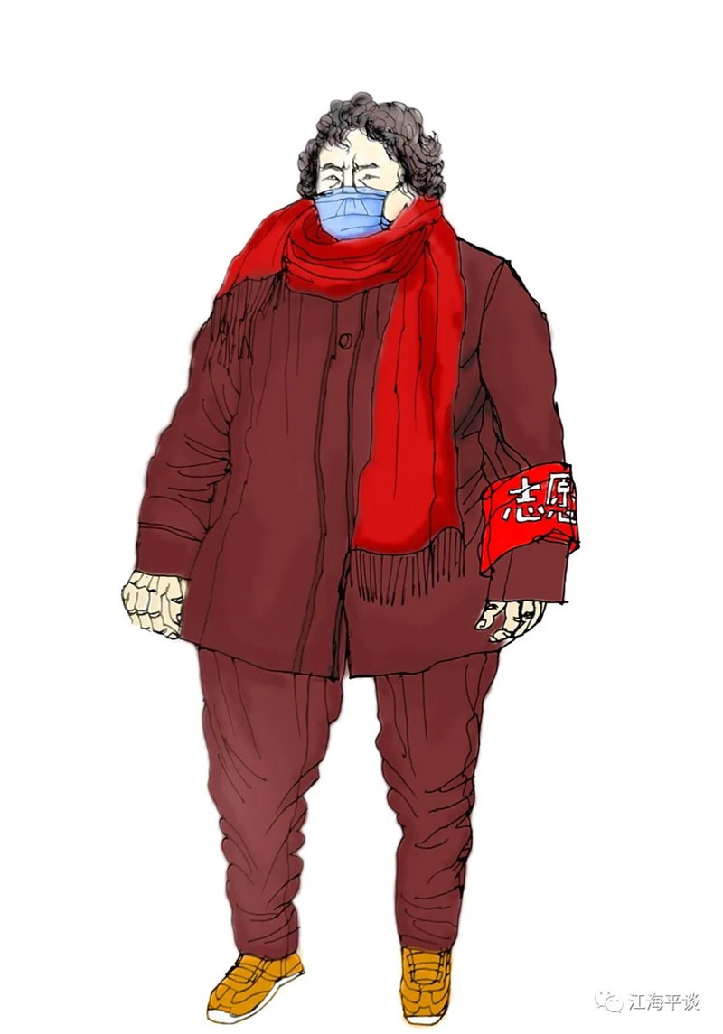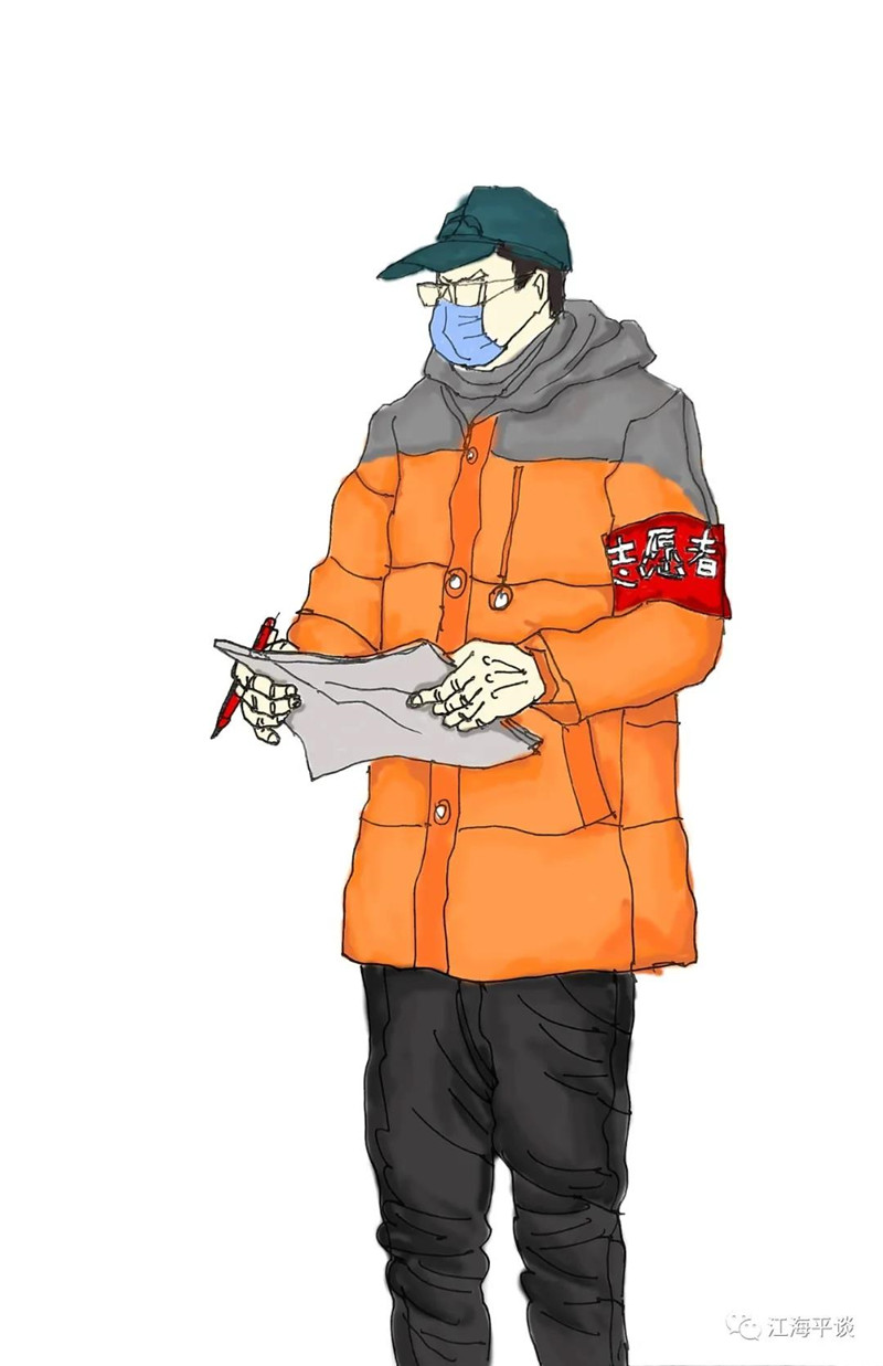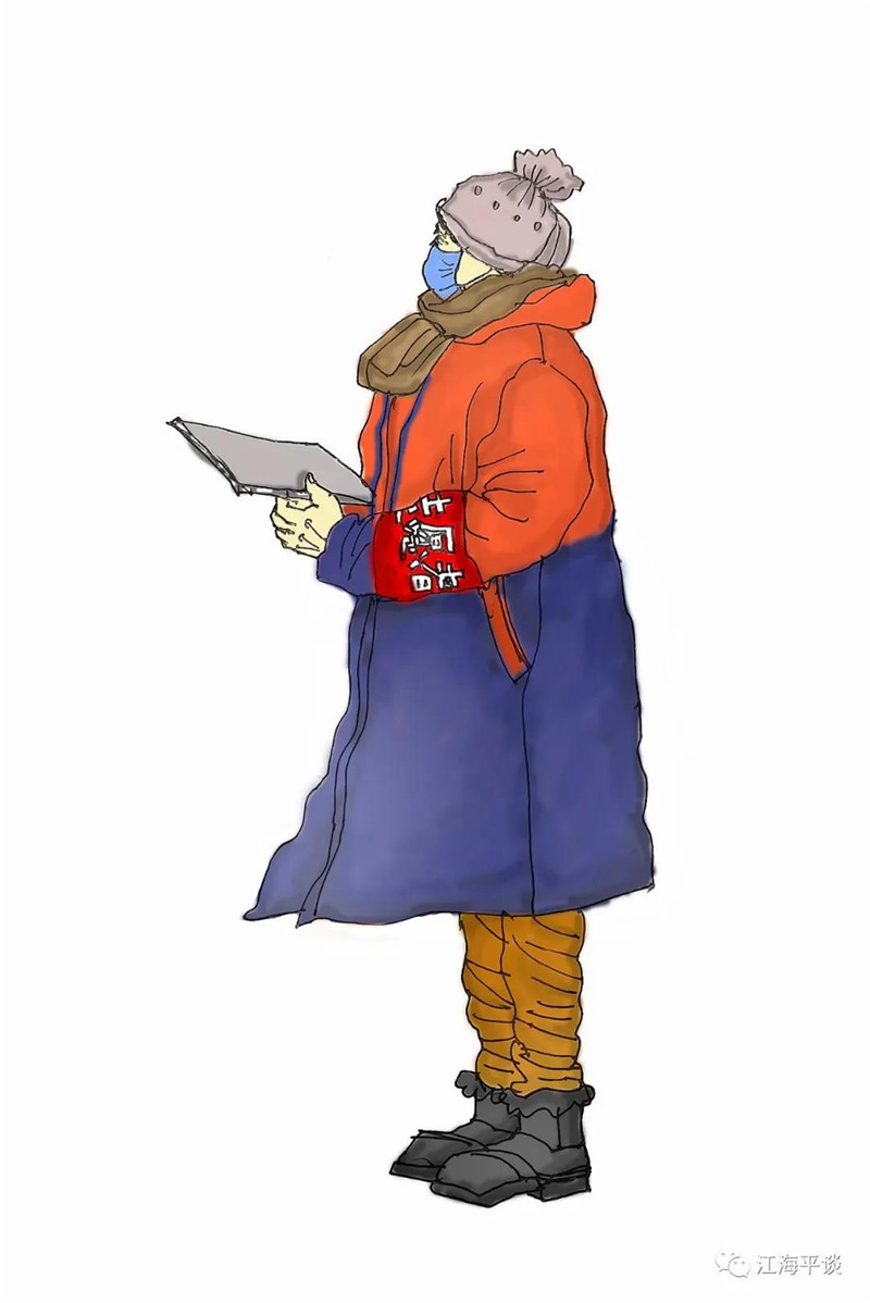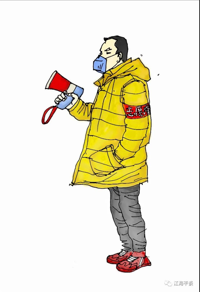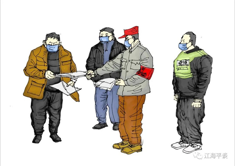 我用速寫的形式,把自己每天看到聽到的最動人的故事或場景記錄下來,組成了一幅幅“防控抗疫”的群英圖譜,特別是那些奮戰(zhàn)在一線的廣大醫(yī)務(wù)工作者以及在街頭巷尾,社區(qū)民宅忘我工作、無私奉獻的街道干部和志愿者是我描繪的主要對象。雖然,他們都是普普通通的人,但他們都做出了不平凡的事。他們是這個時代真正的英雄,也是這個時代最可愛的人!