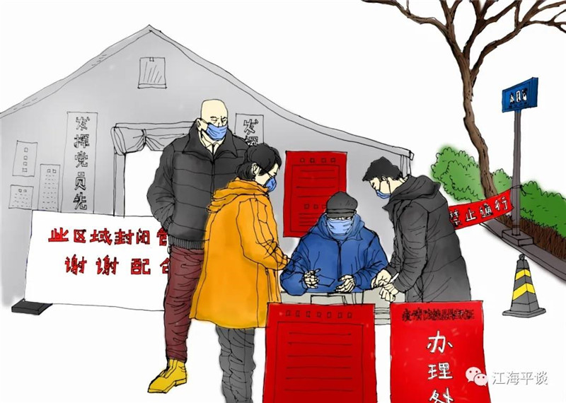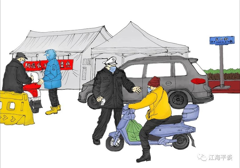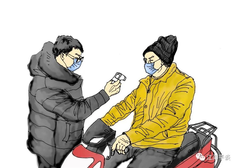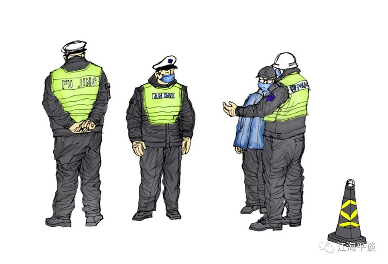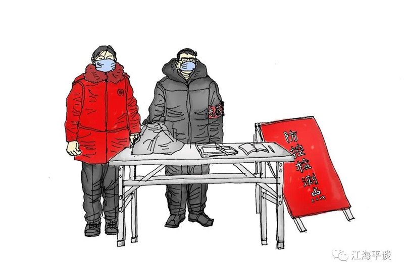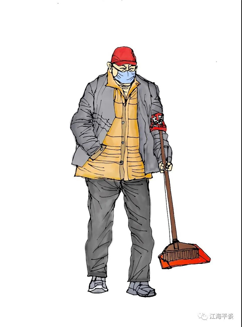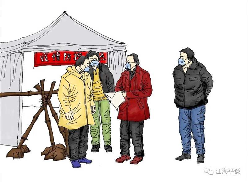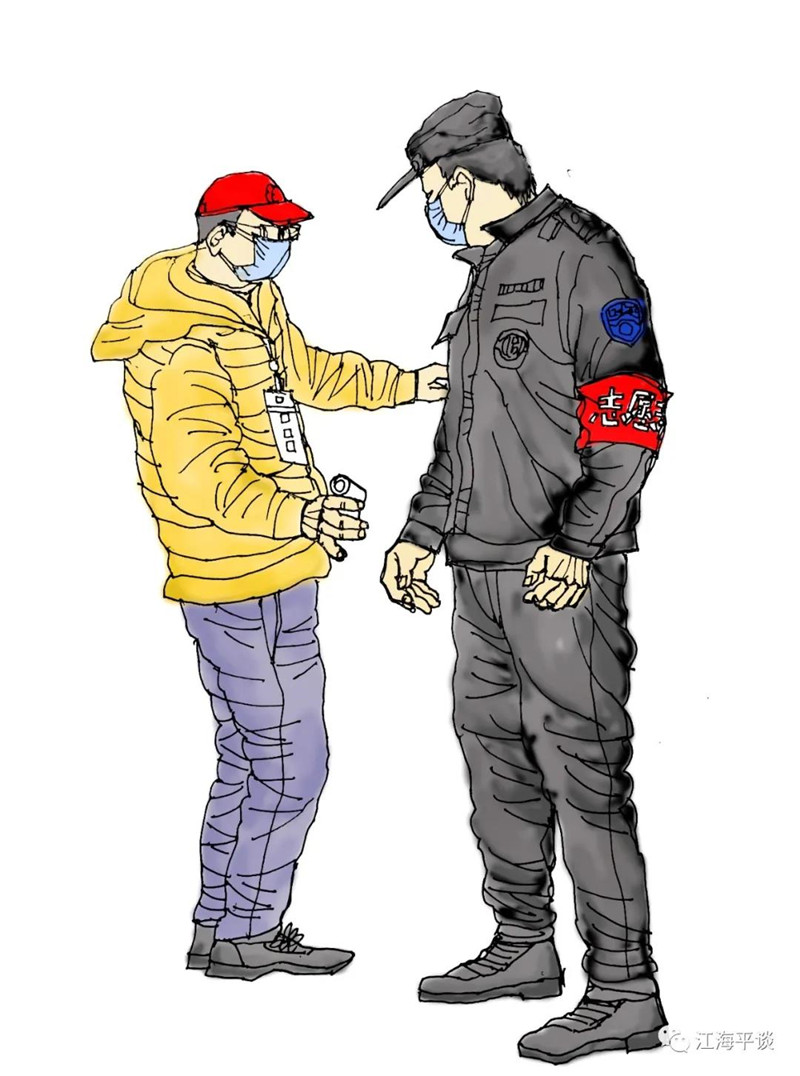我用速寫的形式,把自己每天看到聽到的最動人的故事或場景記錄下來,組成了一幅幅“防控抗疫”的群英圖譜,特別是那些奮戰(zhàn)在一線的廣大醫(yī)務(wù)工作者以及在街頭巷尾,社區(qū)民宅忘我工作、無私奉獻的街道干部和志愿者是我描繪的主要對象。雖然,他們都是普普通通的人,但他們都做出了不平凡的事。他們是這個時代真正的英雄,也是這個時代最可愛的人!