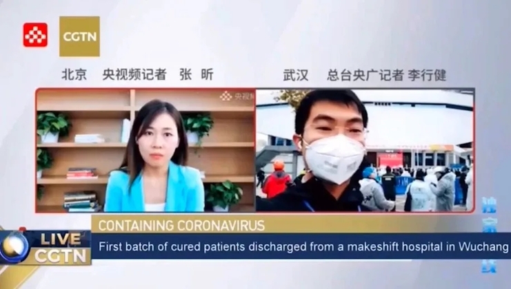 2月11日,中央廣播電視總臺(tái)中國之聲特別報(bào)道部記者李行健在武昌方艙醫(yī)院前與央視頻連線,并通過CGTN等平臺(tái)同步直播。