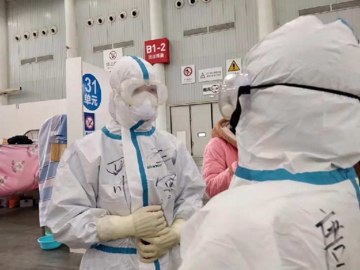 2月21日,我來到洪山體育館。不久前,我在這里聽過演唱會(huì),看過男子籃球比賽。沒想到再見到它,已經(jīng)變成了收治新冠肺炎患者的方艙醫(yī)院。穿上隔離服,經(jīng)過嚴(yán)密的防護(hù)措施,我再次走進(jìn)了它。