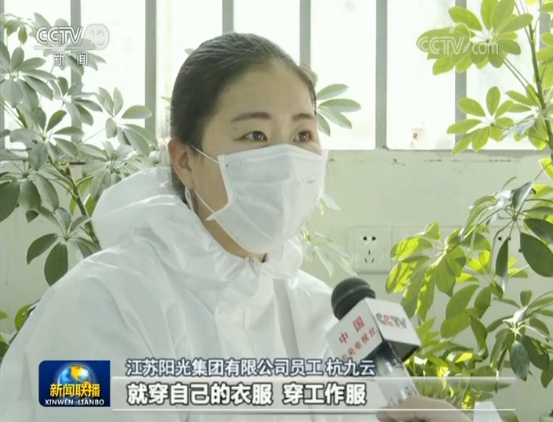 江蘇陽(yáng)光集團(tuán)有限公司員工 杭九云:完全不一樣,我們平時(shí)干活的話,就穿自己的工作服,穿廠服就好了,現(xiàn)在來(lái)了,要穿這個(gè)密不透風(fēng),我感覺(jué)醫(yī)生還要比我們不容易,他們還要去救人,其實(shí)他們比我們還要更累,所以堅(jiān)持吧。