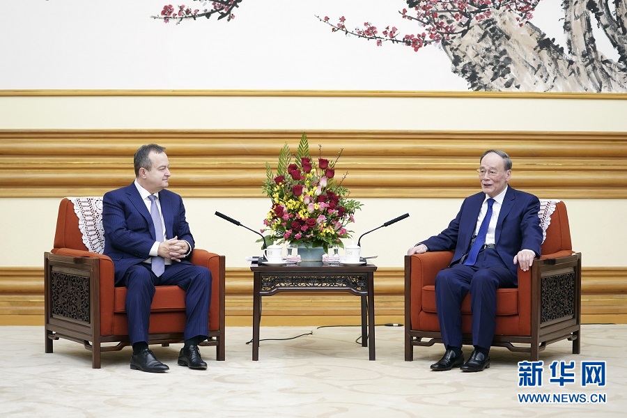2月27日,國家副主席王岐山在北京中南海會見塞爾維亞第一副總理兼外長達(dá)契奇。 新華社記者 張領(lǐng) 攝