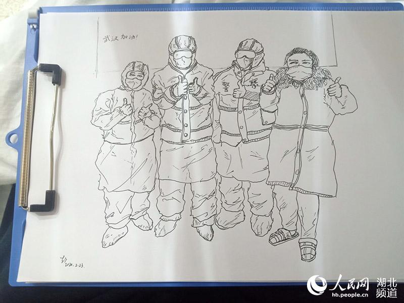 2月27日,來自貴州遵義的支援湖北醫(yī)療隊護士長李蘭收到了患者送給她的一份珍貴禮物——一幅素描畫,畫中的李蘭正在悉心照顧病患,穿著防護服的身影,充滿著溫暖的力量。