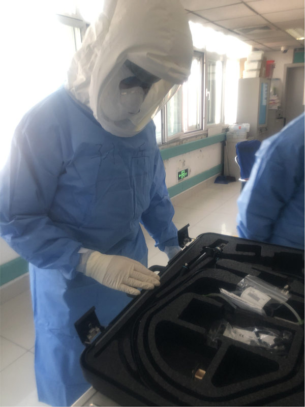 氣管鏡檢查可以直觀了解患者氣道及肺的情況,還可以進行肺泡灌洗獲得最準確的病原學(xué)證據(jù),這對后續(xù)的治療至關(guān)重要。但在氣管鏡操作過程中,患者氣道完全開放,醫(yī)務(wù)人員近距離接觸患者呼出的氣體,職業(yè)暴露風(fēng)險極大。降低感染風(fēng)險的唯一辦法是盡快完成檢查,但是,穿著全套防護服,戴著護目鏡、幾層手套,雙手、雙眼的靈活性大打折扣。這個檢查是對操作者心理抗壓能力和操作嫻熟程度的雙重考驗,也正因為如此,此前這里的患者從未接受過氣管鏡檢查?!拔襾戆??!睂O兵一錘定音。