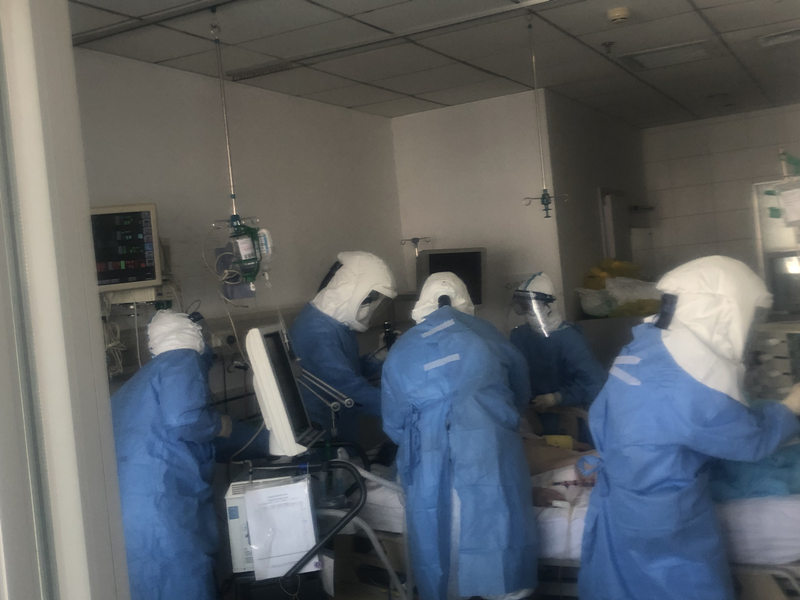 孫兵開始夜以繼日地沖鋒在一線,與死神“角力”。每天早晨,孫兵早早就坐在查房室開始查房,從呼吸機機械通氣策略到ECMO并發(fā)癥的預(yù)防,從抗生素的選擇到出入量目標管理,從鎮(zhèn)靜鎮(zhèn)痛到血栓預(yù)防,從營養(yǎng)支持到血糖控制,孫兵為每一名患者制定了全面而細致的治療方案,同時,根據(jù)每名患者不同情況提出明確而嚴格的目標要求。查房后,他依然要穿上防護服進入隔離病房進行查體、吸痰和具體指導(dǎo),直到下午1點左右才能出來吃午飯。下午3點與專家討論結(jié)束后,再次進入隔離病房,查體、吸痰、操作,檢查治療方案是否落實、目標是否達到,直到晚上8點多才出來。晚上9點多回到酒店后,他的工作尚不能結(jié)束,他還要總結(jié)、反思患者的各項治療與效果。
