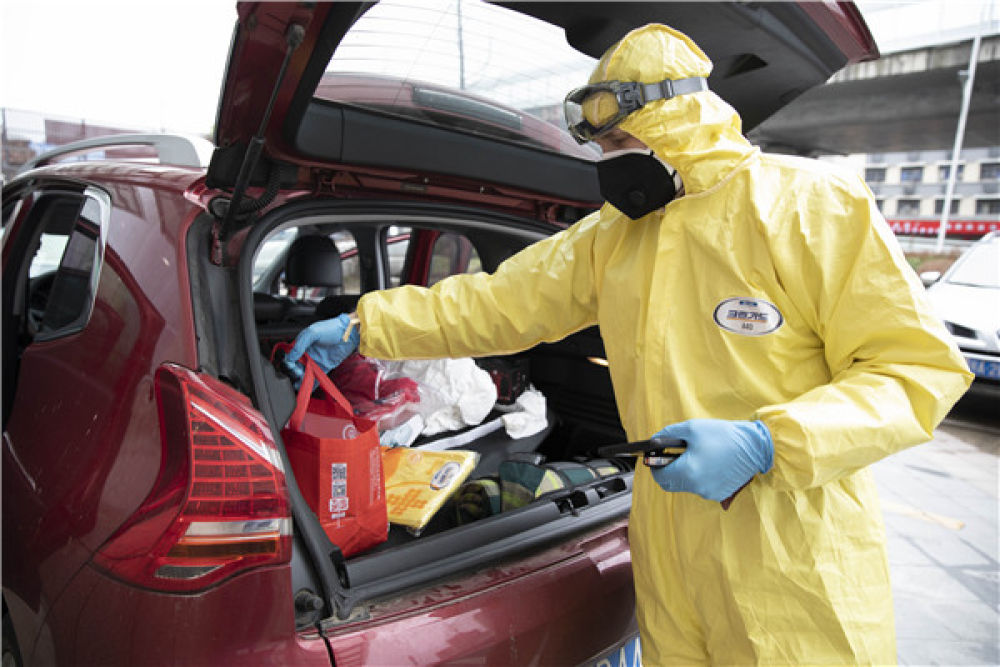 送去消毒水、橡膠手套、防護(hù)服、飯菜
