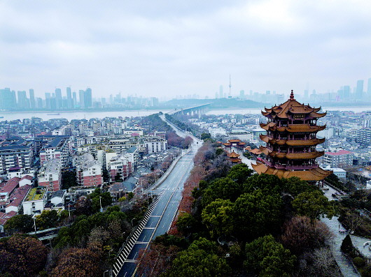 ▲1月26日拍攝的武漢黃鶴樓和長(zhǎng)江大橋(無(wú)人機(jī)照片)。新華社記者熊琦攝