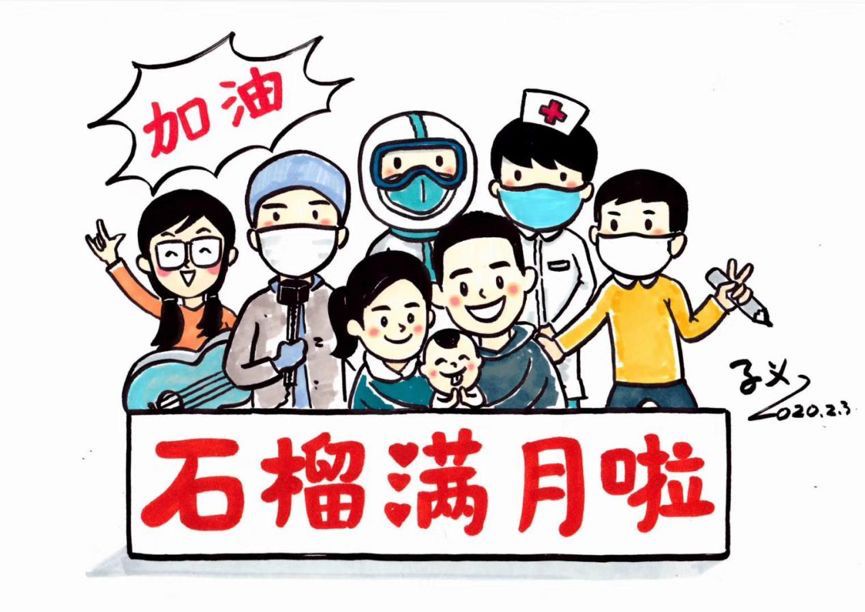 △插畫師網(wǎng)友為“小石榴”手繪“滿月全家?!?/font>