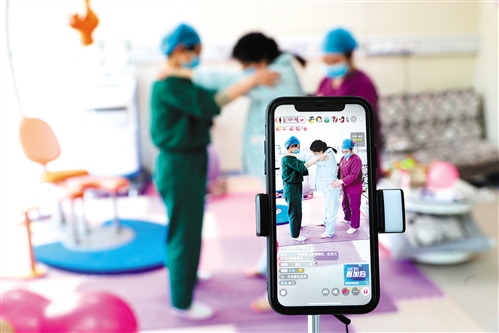日前,江西撫州東鄉(xiāng)區(qū)人民醫(yī)院孕婦學(xué)校改線下上課為線上授課,醫(yī)生通過直播為孕媽媽們答疑解惑。 何江華攝(中經(jīng)視覺)