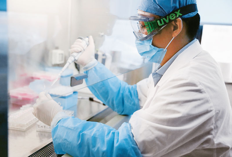 新冠肺炎疫情發(fā)生后,我國科研人員用了不到一周時(shí)間就確定了新冠病毒的全基因組序列,分離得到病毒毒株并向世界發(fā)布共享。我國在公共衛(wèi)生和醫(yī)療健康領(lǐng)域多年積淀的科研能力、平臺(tái)條件、人才儲(chǔ)備和技術(shù)產(chǎn)品,使我們有信心有能力最終戰(zhàn)勝這次新冠肺炎疫情,有力維護(hù)國家戰(zhàn)略安全。圖為科研人員在實(shí)驗(yàn)室進(jìn)行病毒核酸提取。軍事醫(yī)學(xué)研究院供圖