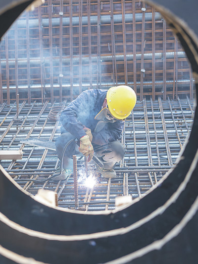 3月6日,工人在位于山西晉中市榆次區(qū)的太焦高鐵晉中特大橋項(xiàng)目施工現(xiàn)場(chǎng)作業(yè)。新華社記者 楊晨光攝