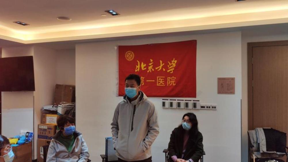 圖為北京大學(xué)第一醫(yī)院援湖北醫(yī)療隊(duì)李海潮和2019級(jí)臨床專業(yè)的學(xué)生開網(wǎng)絡(luò)會(huì)議。