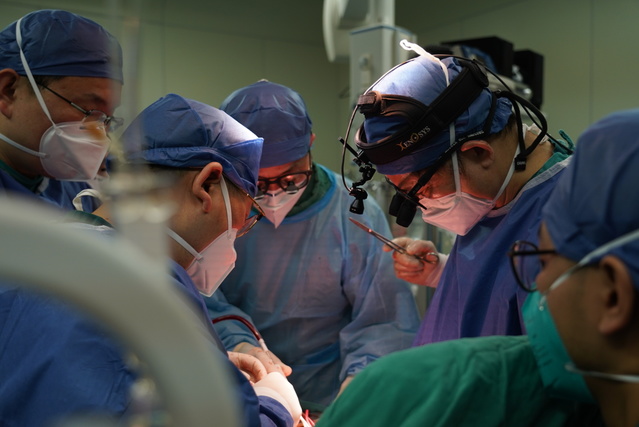 隨即,協(xié)和醫(yī)院以心臟大血管外科主任董念國教授、夏家紅教授為首的專家團(tuán)隊(duì),穿著厚厚的防護(hù)服施行心臟移植手術(shù)。終于,晚上9點(diǎn)27分,這顆一路狂奔的心臟順利安放至11歲女孩欣欣(化名)的胸腔中,重新有力地跳動起來。