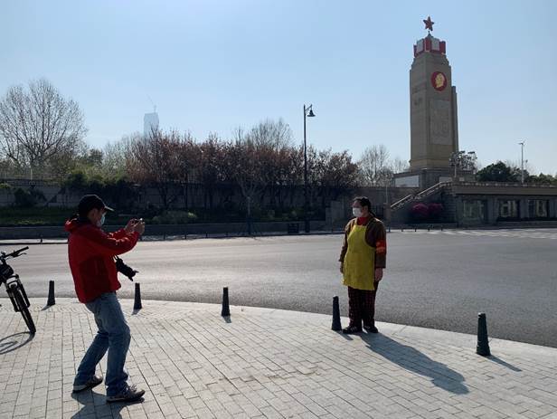 志愿者陶紅花獨(dú)自在紀(jì)念碑下溜達(dá)