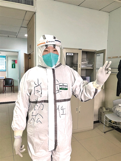 肖勁松準備進入隔離病房疏導(dǎo)病人 受訪者供圖