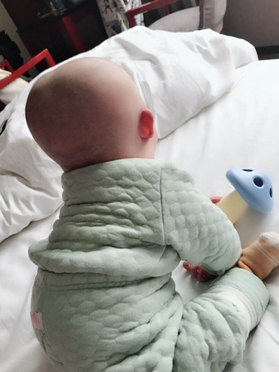 在張愛明的記憶中,蓬蓬的發(fā)熱時間持續(xù)得格外長?!八麩?4天,體溫最高的一次達到39.7℃。我們從2月1日,就開始使用小劑量的激素——甲潑尼龍來抑制炎癥,根據(jù)‘新冠指南’,我們只使用了5天,停藥后,他又出現(xiàn)反復(fù)發(fā)熱。經(jīng)過與武漢同濟醫(yī)院教授遠程會診,并經(jīng)家長簽字同意后,我們使用克力芝來抗病毒治療?!?這是全球首例嬰兒使用該藥物治療新冠肺炎。