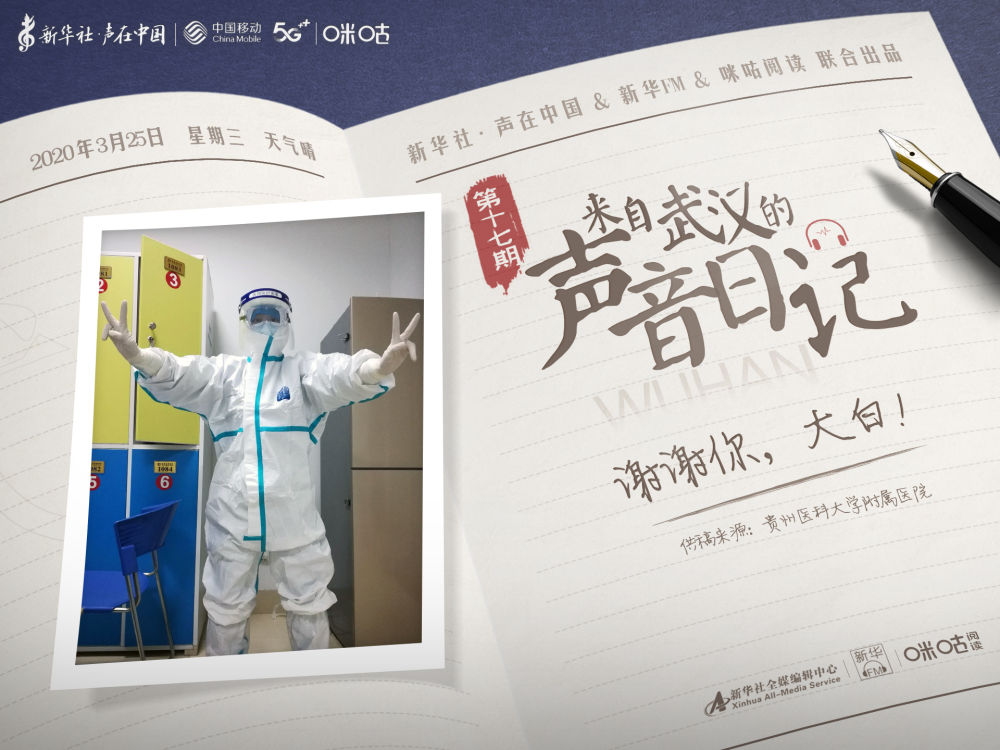 點擊收聽《來自武漢的聲音日記》第十七期。今天的日記來自貴州醫(yī)科大學(xué)附屬醫(yī)院援武漢醫(yī)療隊程小雪。