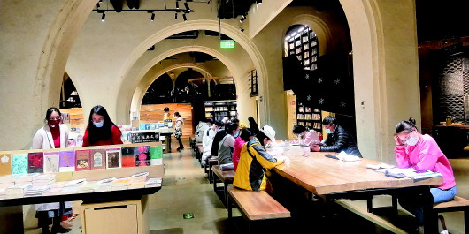 ▲3月17日,復業(yè)半個月后,西寧幾何書店里人氣漸旺。本報記者呂雪莉攝