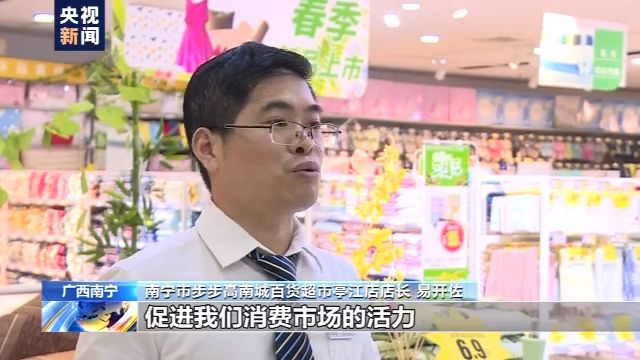 廣西南寧市步步高南城百貨超市亭江店店長 易開佐:通過這個活動,給我們消費者帶來更多的實惠,同時也促進我們企業(yè)復工復產,促進我們這個消費市場的活力。