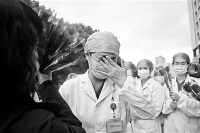 3月30日早上,北京醫(yī)療隊醫(yī)生張捷最后一次走進了武漢的隔離病房,除去例行查房,他還要向患者們告別。一次次接受著“能回家了,替你們高興”的祝福,一遍遍囑咐著康復(fù)中的注意事項。原本半個小時的查房,一個半小時才結(jié)束,走出來時,張捷的眼眶濕漉漉的。