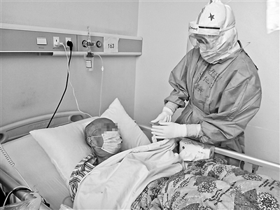 3月30日下午,已經(jīng)沒有檀學(xué)兵的班次了,但她還是穿上防護服進了病房,敲門進去,老胡轉(zhuǎn)過來看見是她,淚花一下出來了。