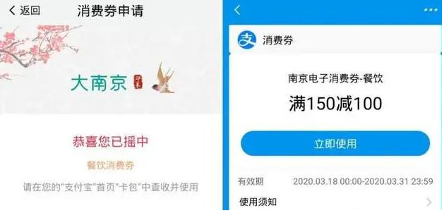 3月13日,江蘇南京推出了3.18億元消費券,包括餐飲、體育、圖書、信息等七大類,面值根據(jù)不同類型按每份100元或50元設(shè)定。