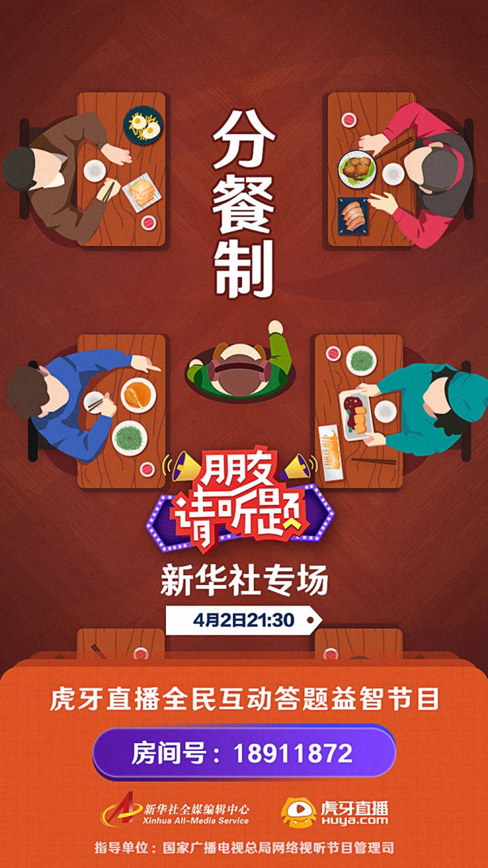 4月2日21:30,大家在最新版的虎牙直播內搜索《朋友請聽題》,即可直接進入直播間,找到答題入口參與活動,答對12題就可分享現(xiàn)金大獎!
