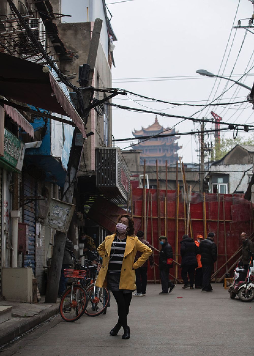 ↑3月15日,一位身穿自制“防護(hù)服”的女士上街買(mǎi)菜時(shí)從黃鶴樓下走過(guò)。她說(shuō)她近兩個(gè)月來(lái),只出過(guò)兩次門(mén)。