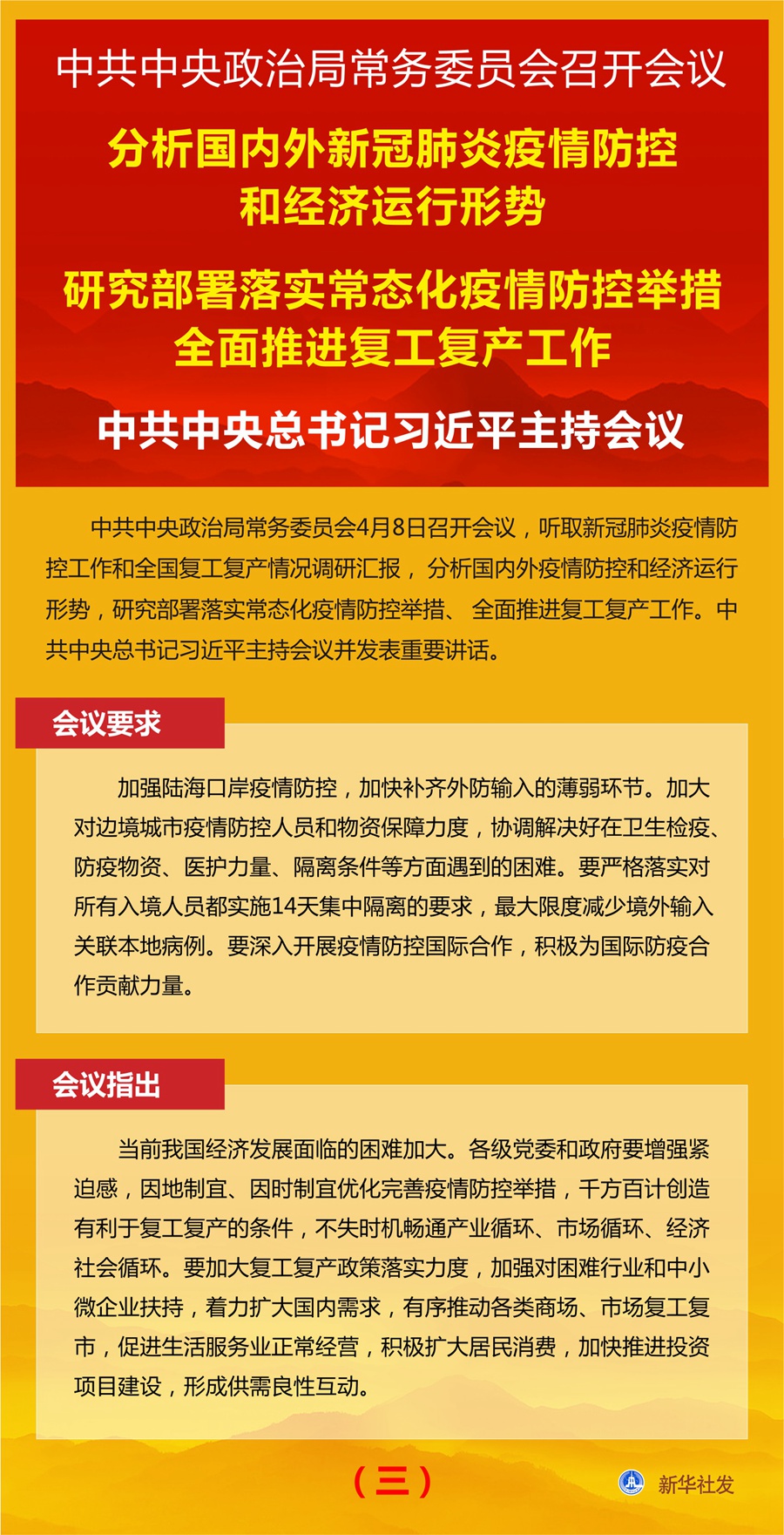 圖表:中共中央政治局常務(wù)委員會(huì)召開會(huì)議 分析國(guó)內(nèi)外新冠肺炎疫情防控和經(jīng)濟(jì)運(yùn)行形勢(shì) 研究部署落實(shí)常態(tài)化疫情防控舉措全面推進(jìn)復(fù)工復(fù)產(chǎn)工作 中共中央總書記習(xí)近平主持會(huì)議(三) 新華社發(fā)