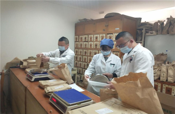 中藥房藥師在調(diào)劑預(yù)防中藥(央廣網(wǎng)發(fā) 北京小湯山定點醫(yī)院供圖)