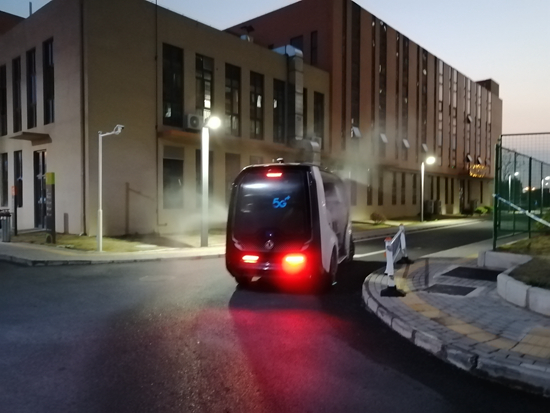 據(jù)悉,以Sharing-VAN無人駕駛觀光車為基礎(chǔ)平臺,臨時(shí)抗疫服務(wù)小組對車輛進(jìn)行了自動(dòng)駕駛、5G云控等方面的優(yōu)化改裝,同時(shí)加裝16L大容量全自動(dòng)消毒噴霧器,以實(shí)現(xiàn)觀察區(qū)內(nèi)高危道路的全程無人駕駛消毒作業(yè)。