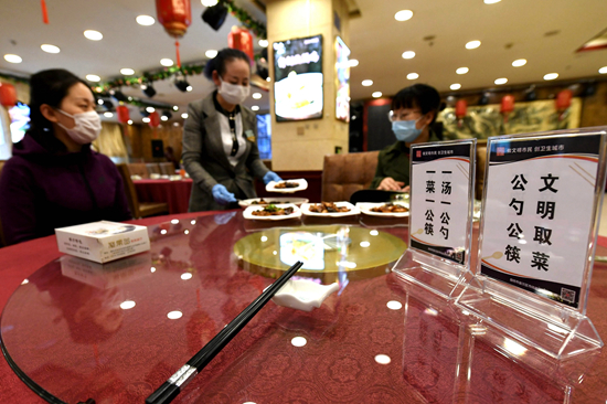 河北廊坊市安次區(qū)一家餐廳內(nèi),服務(wù)員為客人分餐。新華社供圖