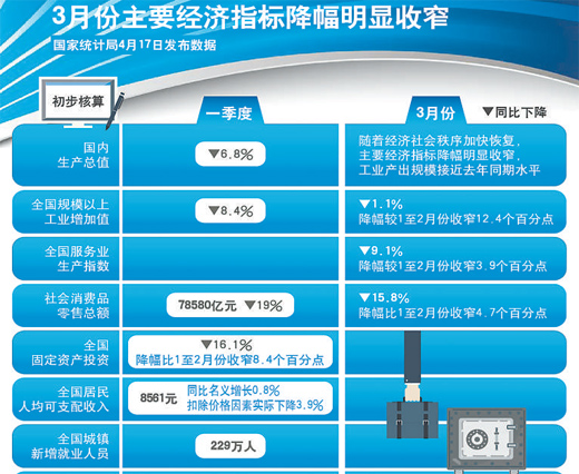 前3月國(guó)內(nèi)生產(chǎn)總值同比下降,3月份主要經(jīng)濟(jì)指標(biāo)呈現(xiàn)回升勢(shì)頭