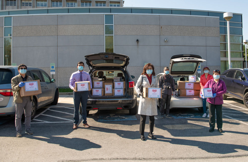 2020年4月6日,在美國馬里蘭州貝塞斯達(dá),“華人支援醫(yī)院”的成員準(zhǔn)備將一批醫(yī)療物資捐獻(xiàn)給當(dāng)?shù)匾患裔t(yī)院。(新華社發(fā))