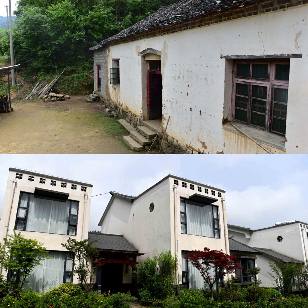 (上圖:過去金寨人守著柴火過日子,新華社記者張曙光攝;下圖:2020年4月16日,大灣村村民在金寨縣花石鄉(xiāng)茶產(chǎn)業(yè)扶貧車間里加工茶葉。新華社記者劉軍喜攝)