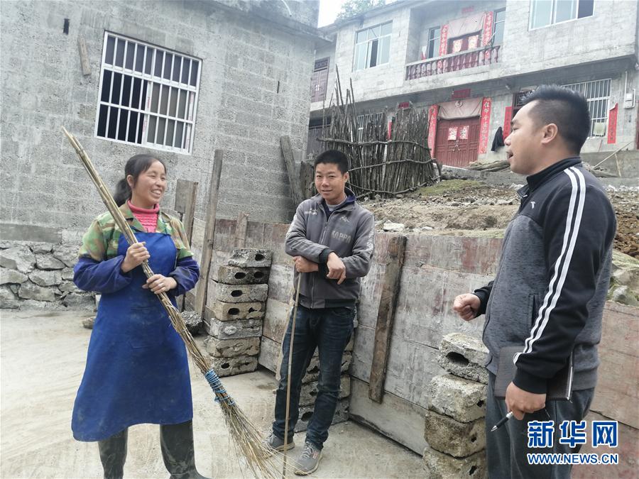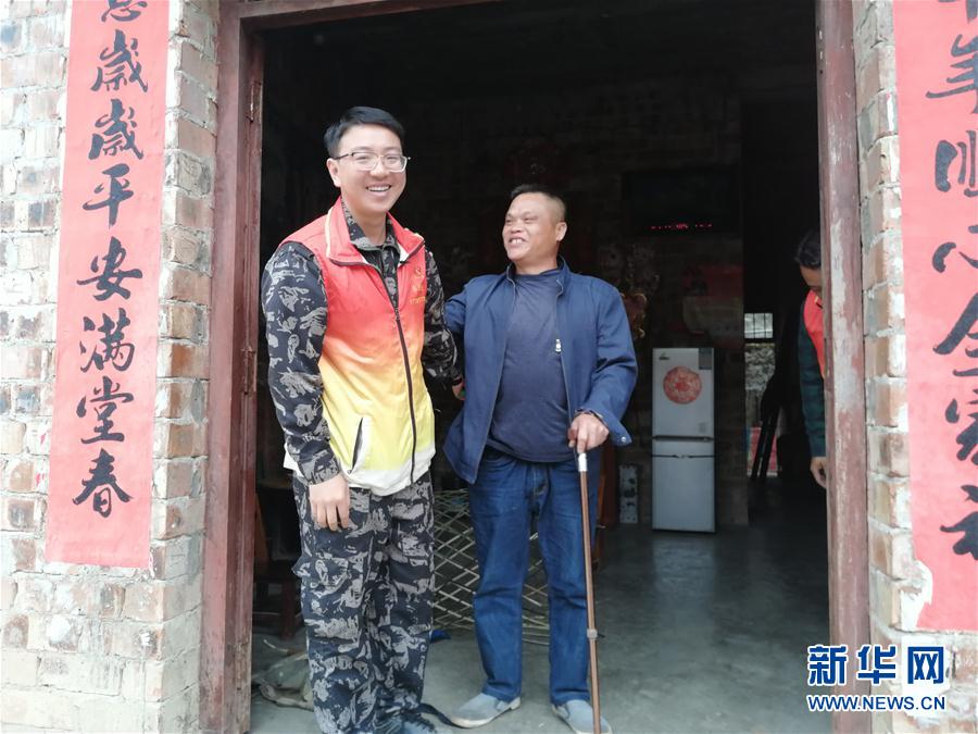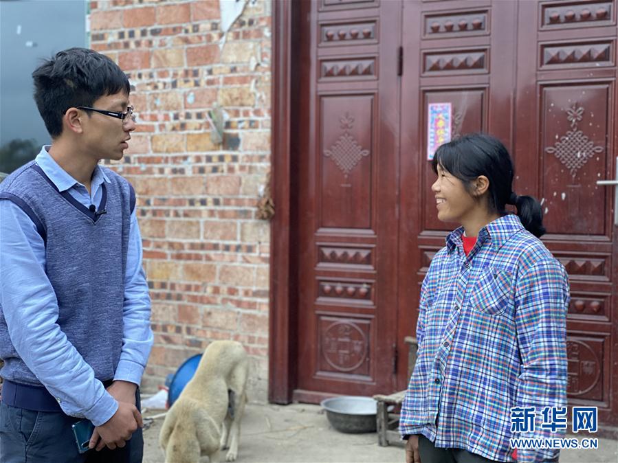 結(jié)束入戶調(diào)查后,廣西田林縣八渡瑤族鄉(xiāng)六林村駐村第一書(shū)記牟海迪(左)與貧困戶告別(4月24日攝)。 新華社記者 王軍偉 攝