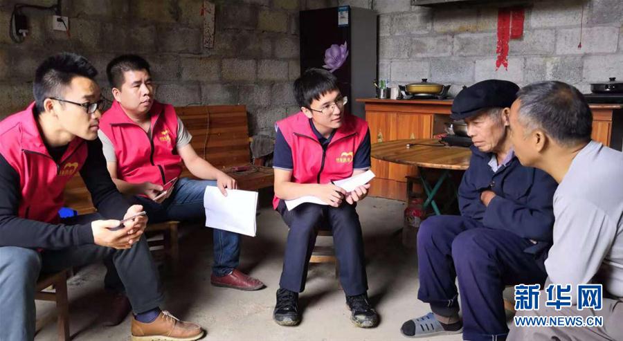 廣西田東縣作登瑤族鄉(xiāng)隴那村駐村第一書(shū)記李宇翔(左三)在走訪貧困戶(資料照片)。 新華社發(fā)