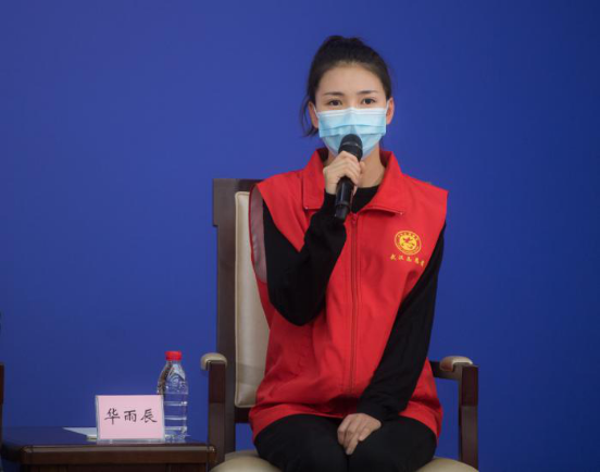 2020年2月23日,國務(wù)院新聞辦公室在湖北武漢舉行國務(wù)院新聞辦記者見面會,邀請?jiān)谖錆h疫情防控一線的普通工作者講述他們團(tuán)結(jié)奮戰(zhàn)的故事,并回答記者提問。圖為武漢市青山區(qū)鋼花小學(xué)音樂教師華雨辰在記者會上。新華社記者 肖藝九/攝