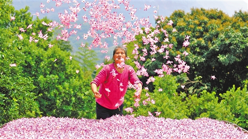 5月5日,在貴州省赤水市長沙鎮(zhèn)長興村,農(nóng)戶在晾曬剛采摘的金釵石斛鮮花。近年來,赤水市積極推進(jìn)生態(tài)農(nóng)業(yè)與鄉(xiāng)村旅游產(chǎn)業(yè)融合發(fā)展,引導(dǎo)農(nóng)民在丹霞石上種植金釵石斛9萬余畝,助力脫貧攻堅(jiān)和鄉(xiāng)村振興。王長育攝(中經(jīng)視覺)