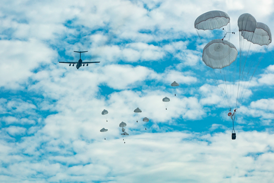 2000年8月,空降兵成功進(jìn)行了一次連投30件作戰(zhàn)物資的試驗(yàn),超過國外一次連投最多22件的紀(jì)錄,這是空降作戰(zhàn)物資實(shí)施快速補(bǔ)給最有效的方法,從此,空降兵有了可靠的“機(jī)動(dòng)式倉庫”。